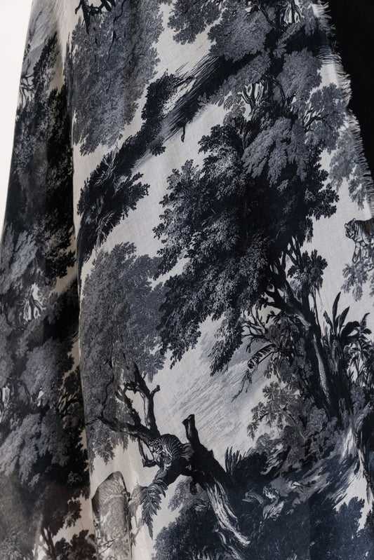 Pelēks lakats ar tīģeru un palmu rakstu