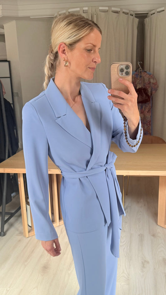 Gaiši zilas krepa bikses ar elastīgu jostu