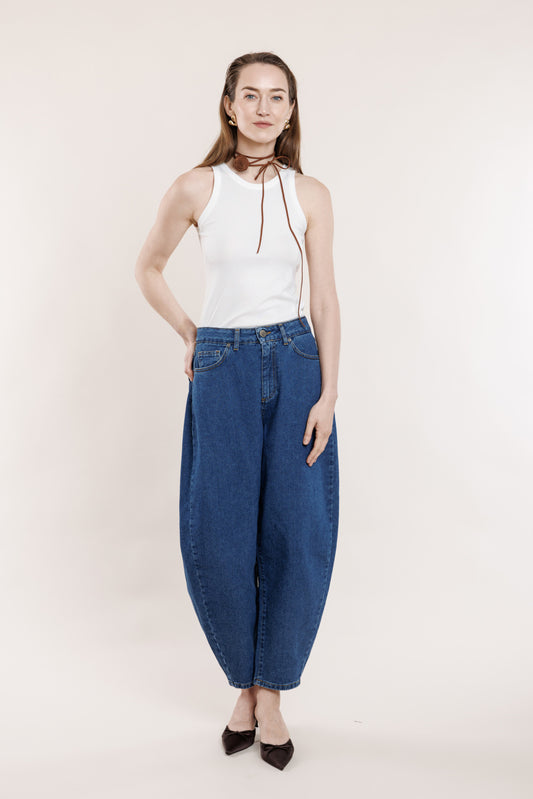 IzpārdošanaTumši zilas bikses ar sašaurinātu siluetu