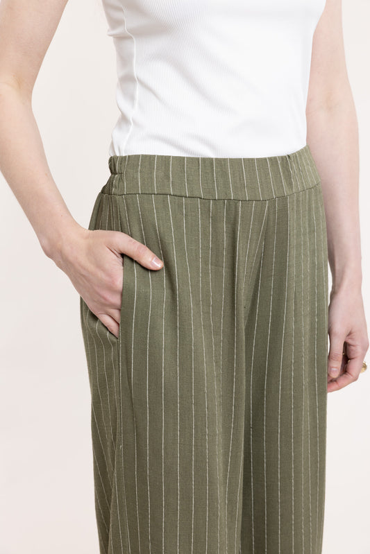 IzpārdošanaZaļas linu bikses ar smalku svītriņu