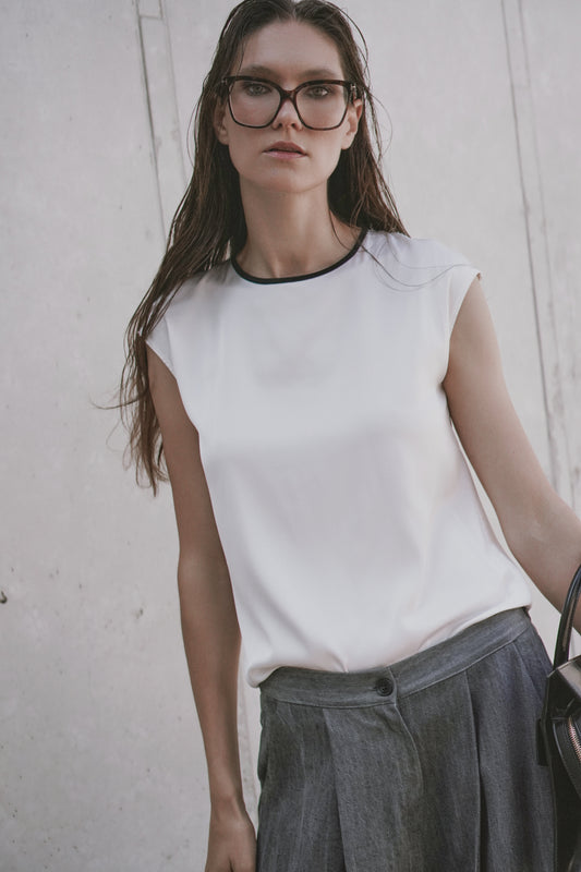 IzpārdošanaMelns kokvilnas polo ar apkaklīti un bantītēm