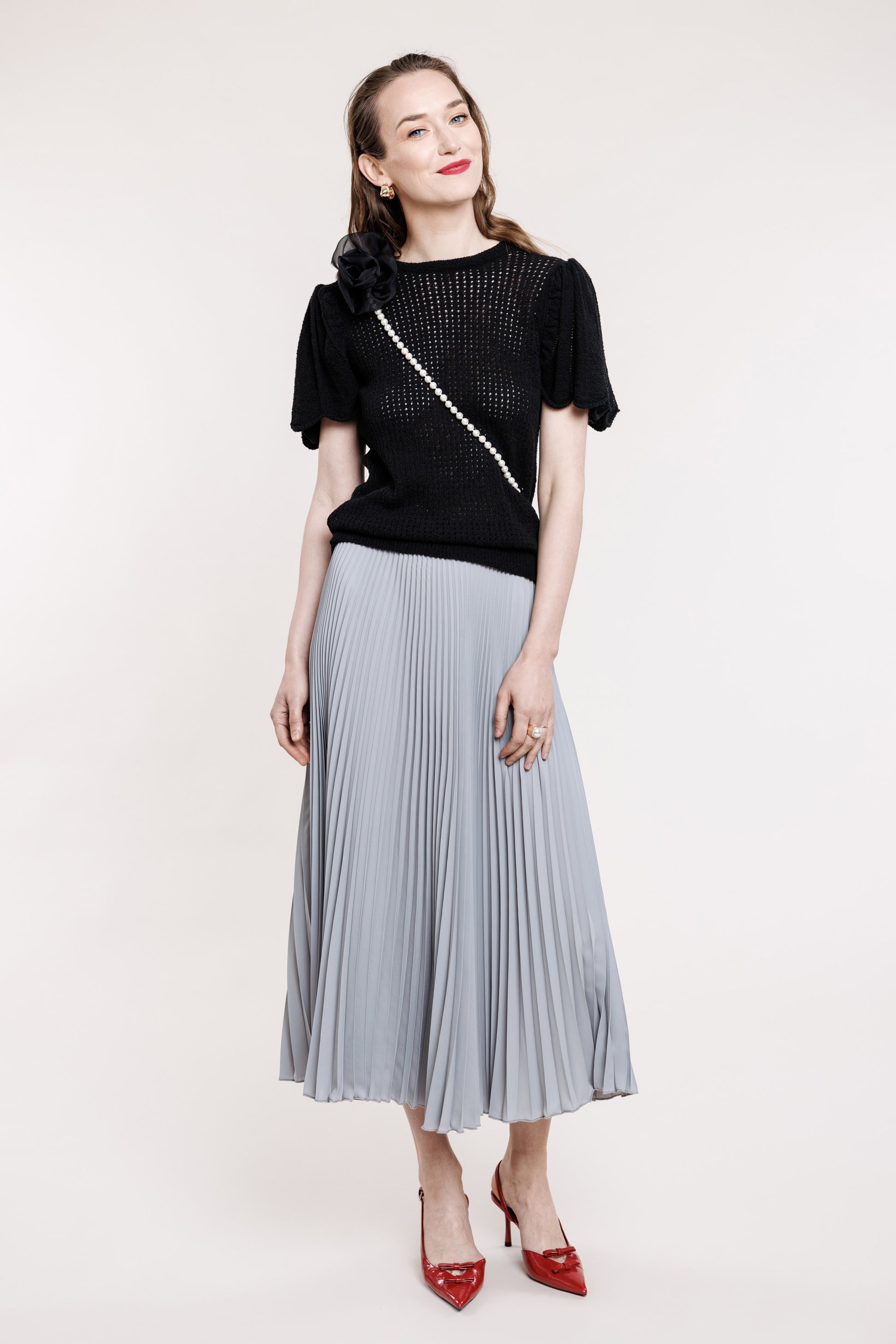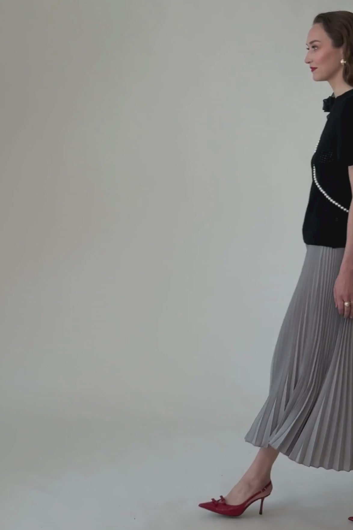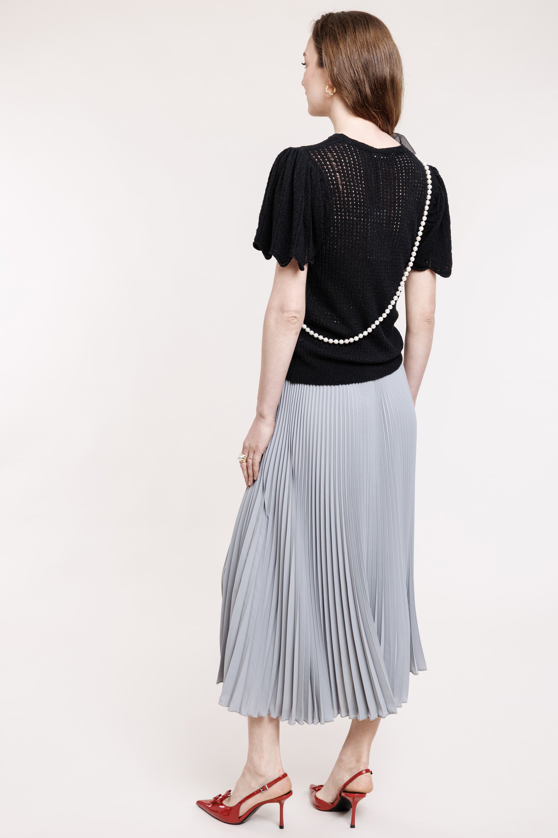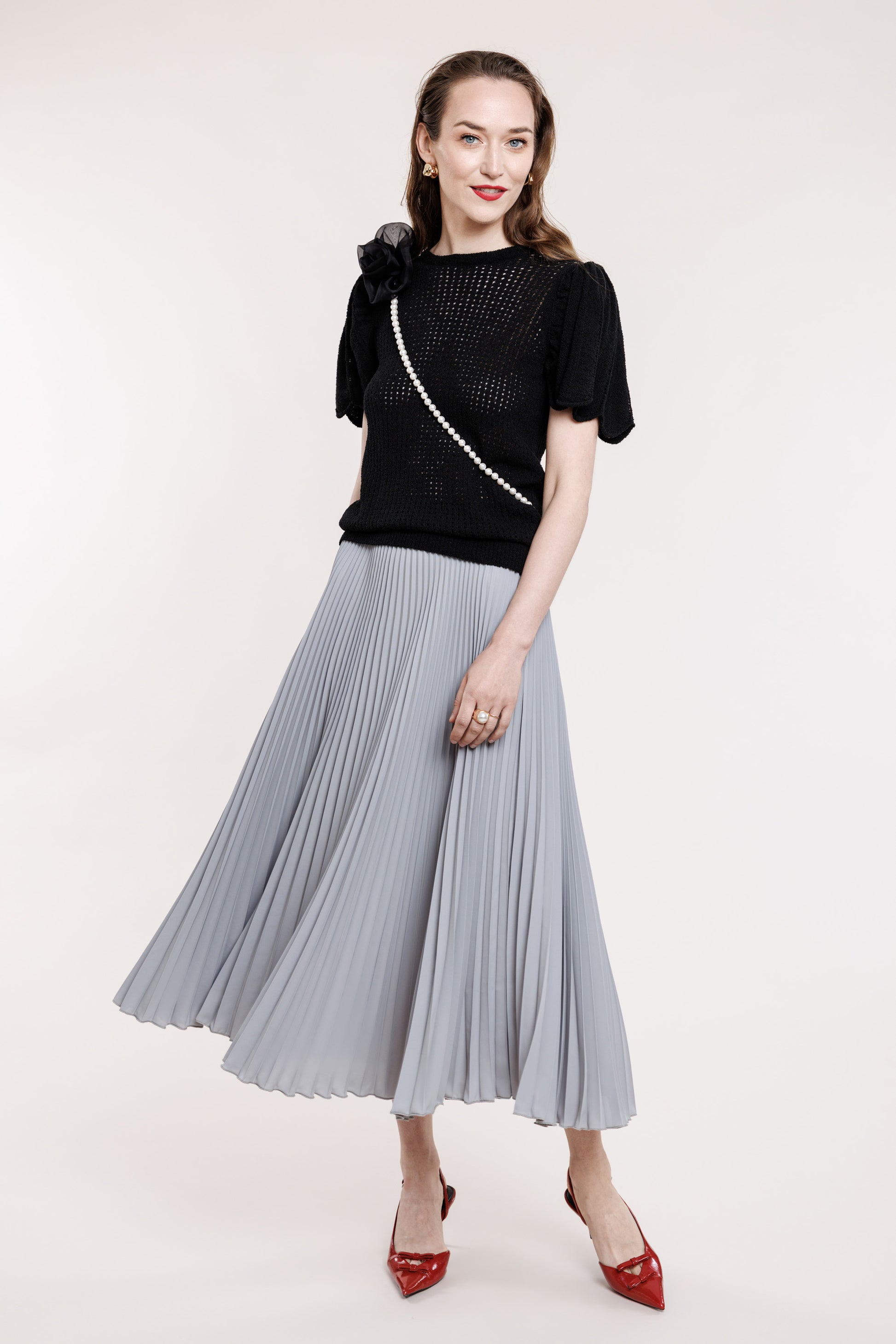 Gofrēti pelēkie svārki midi garumā. Jostas daļā plata gumija.