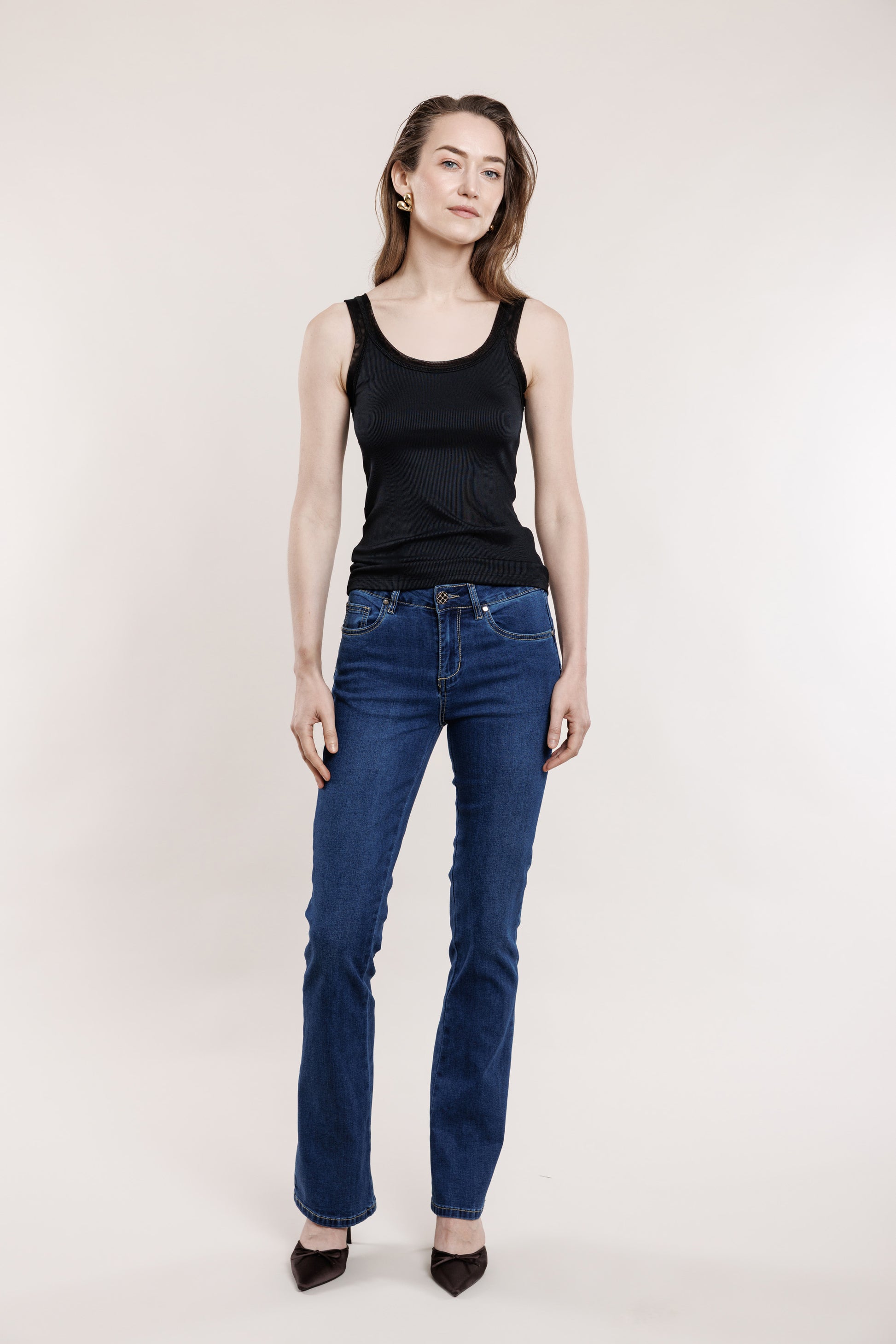 Elastīgas, plānas džinsas ar šaurām bikšu starām.