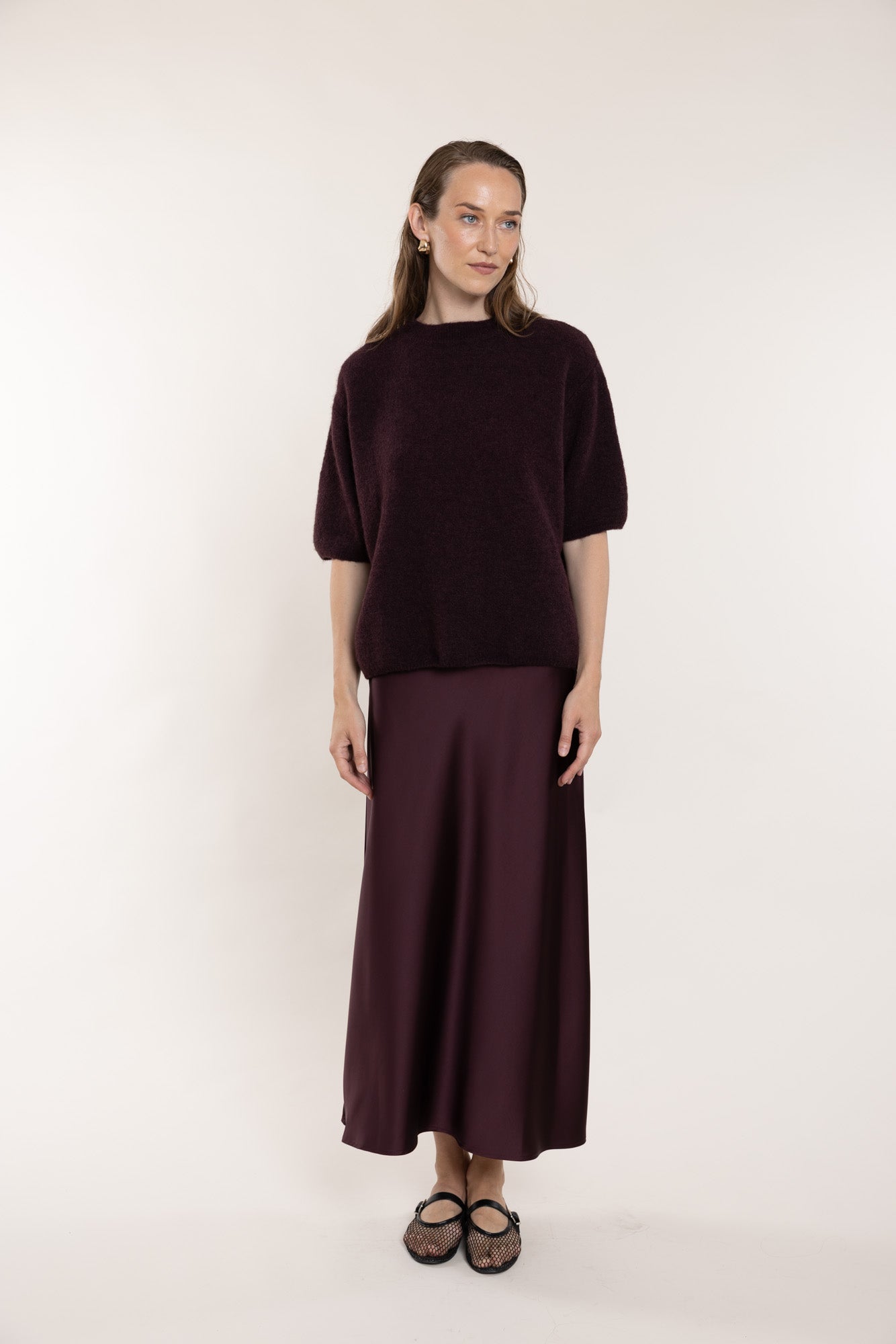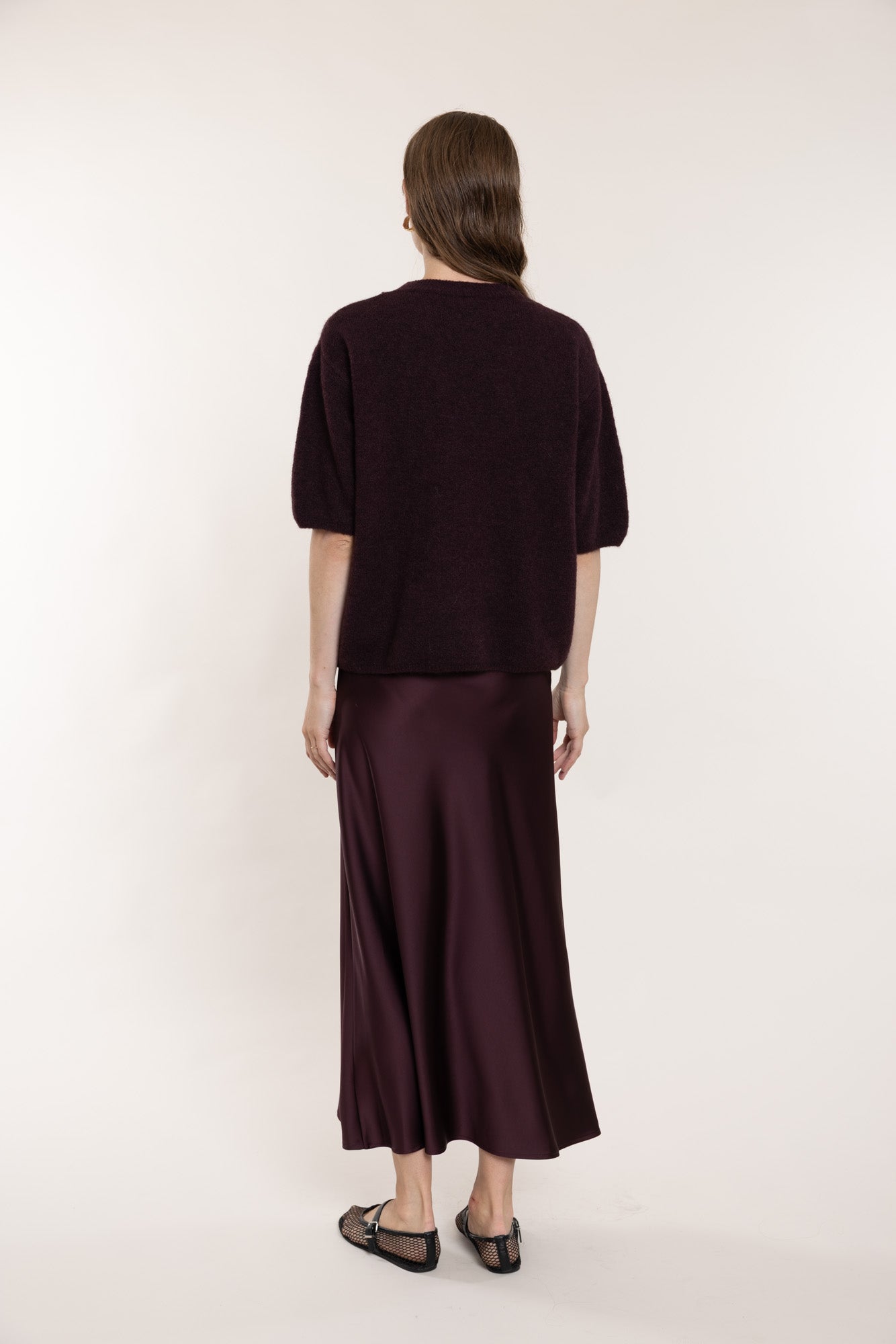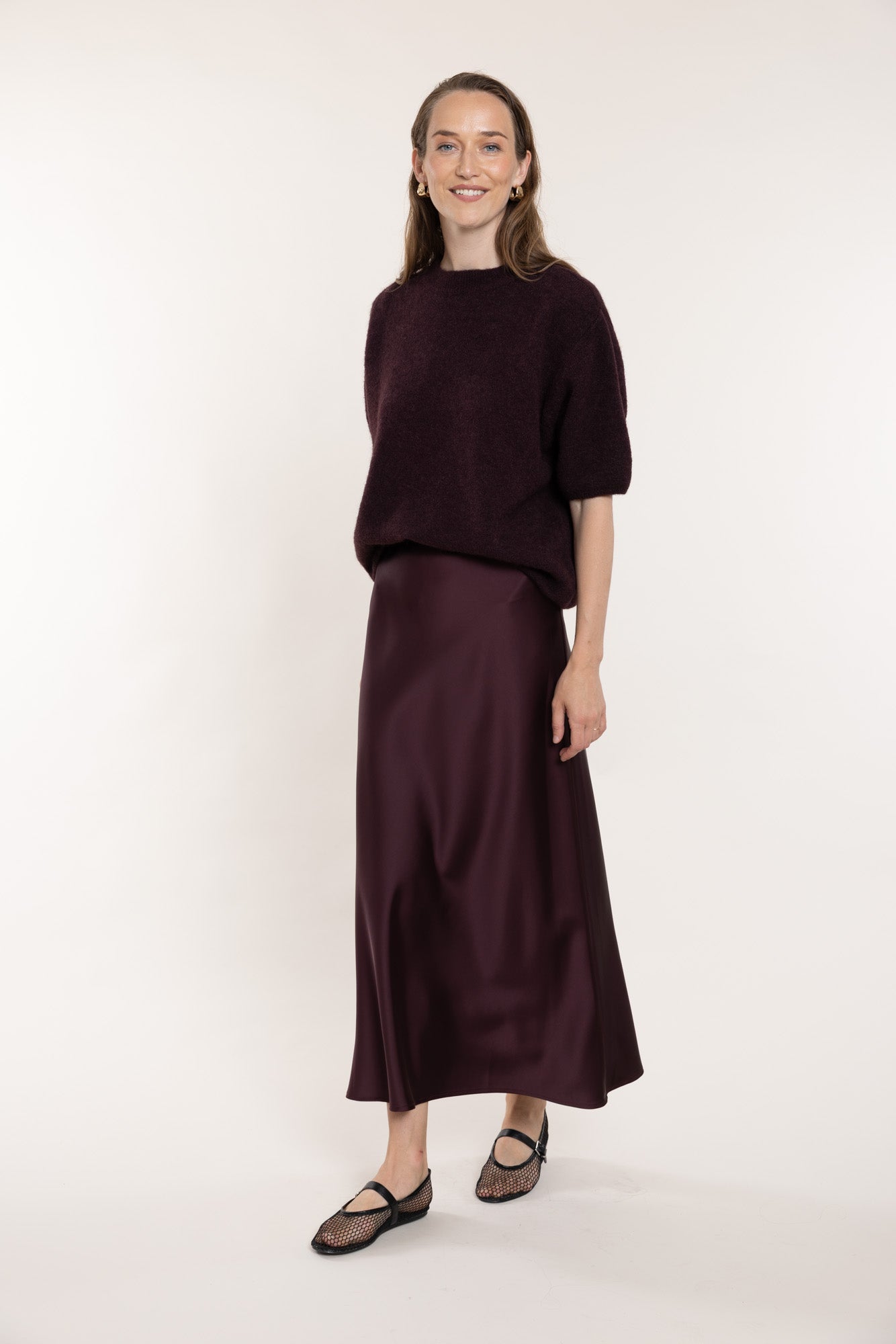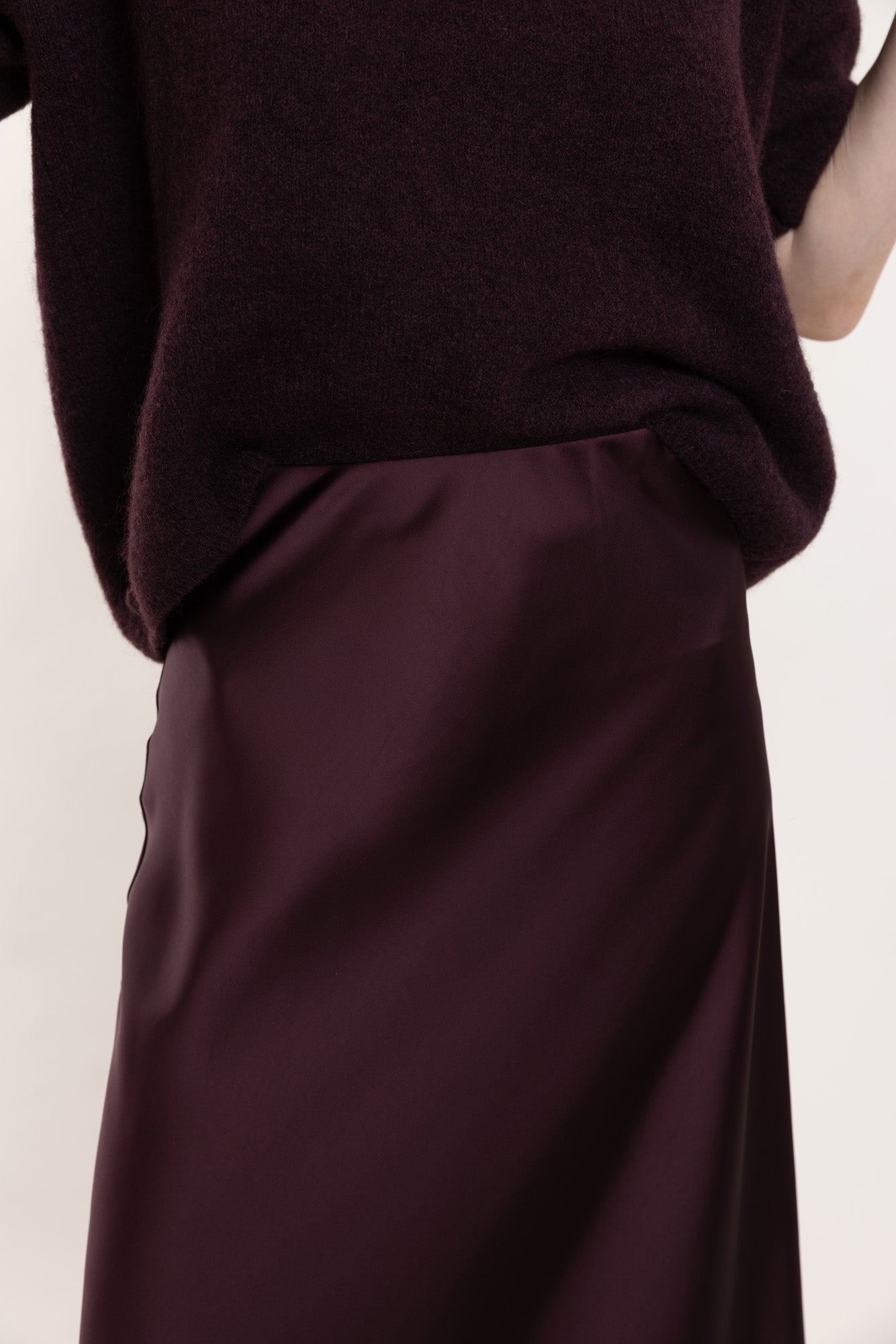Slipa svārki vīna tonī ar elastīgu gumiju jostas vietā, midi garums.