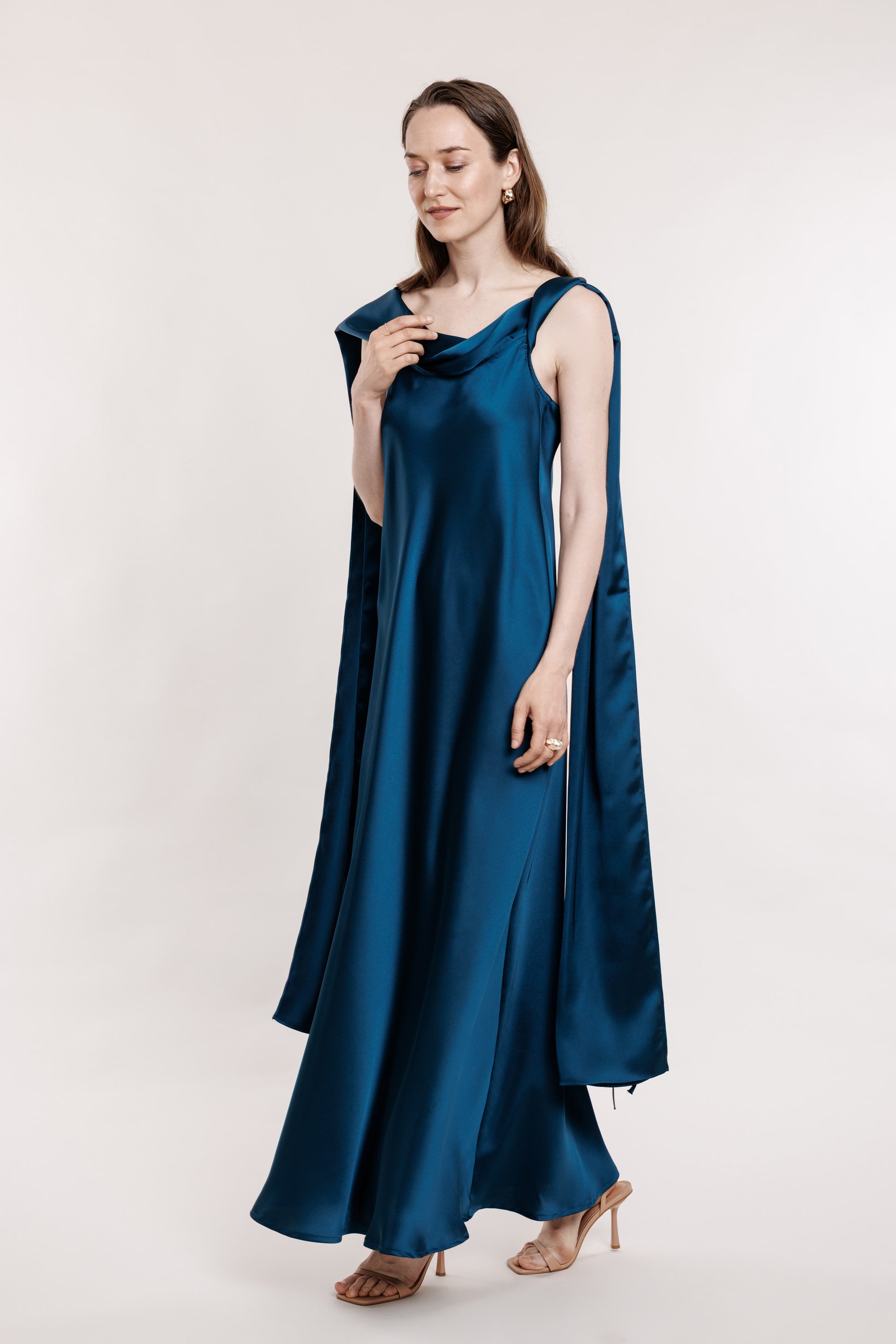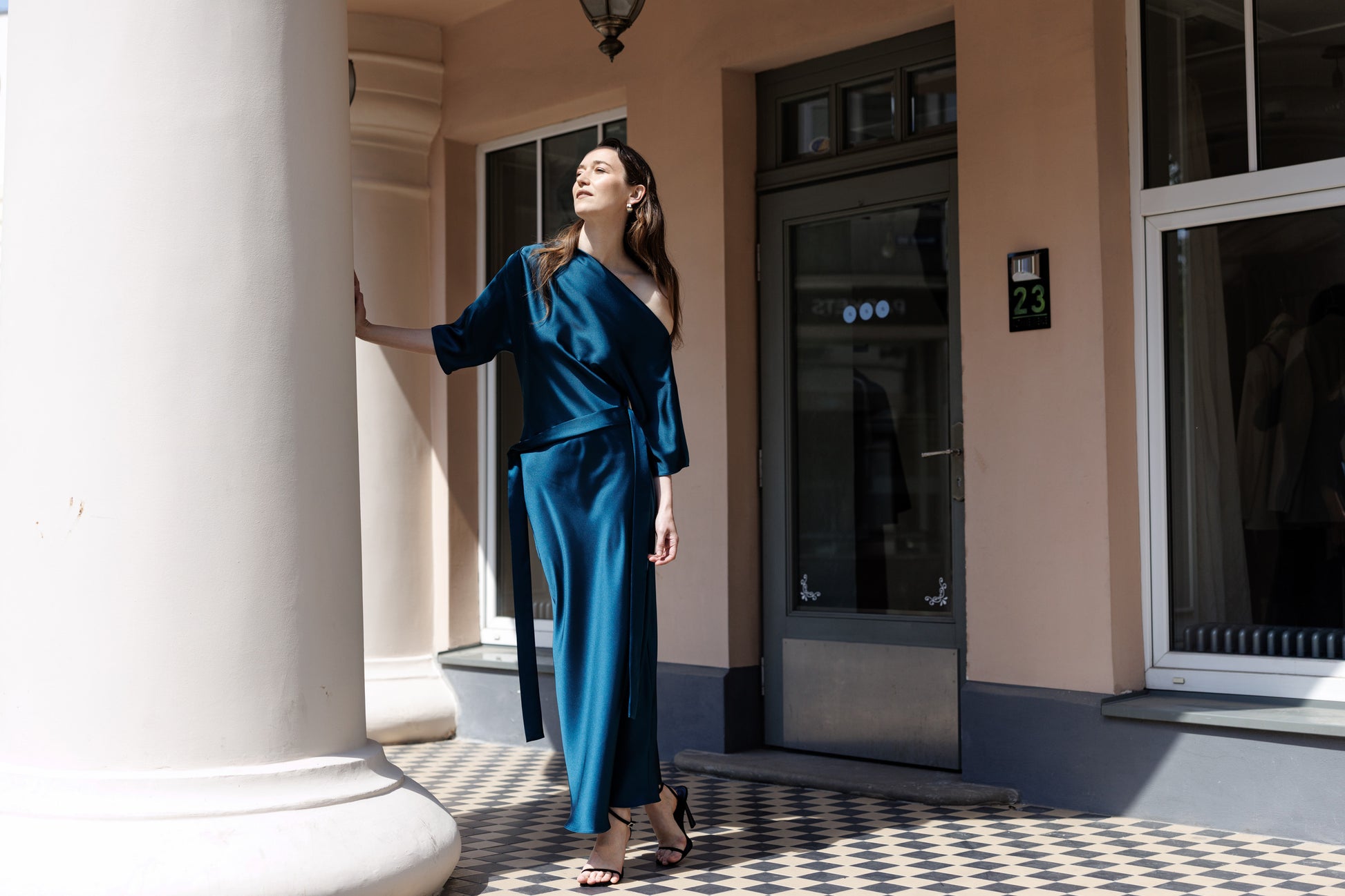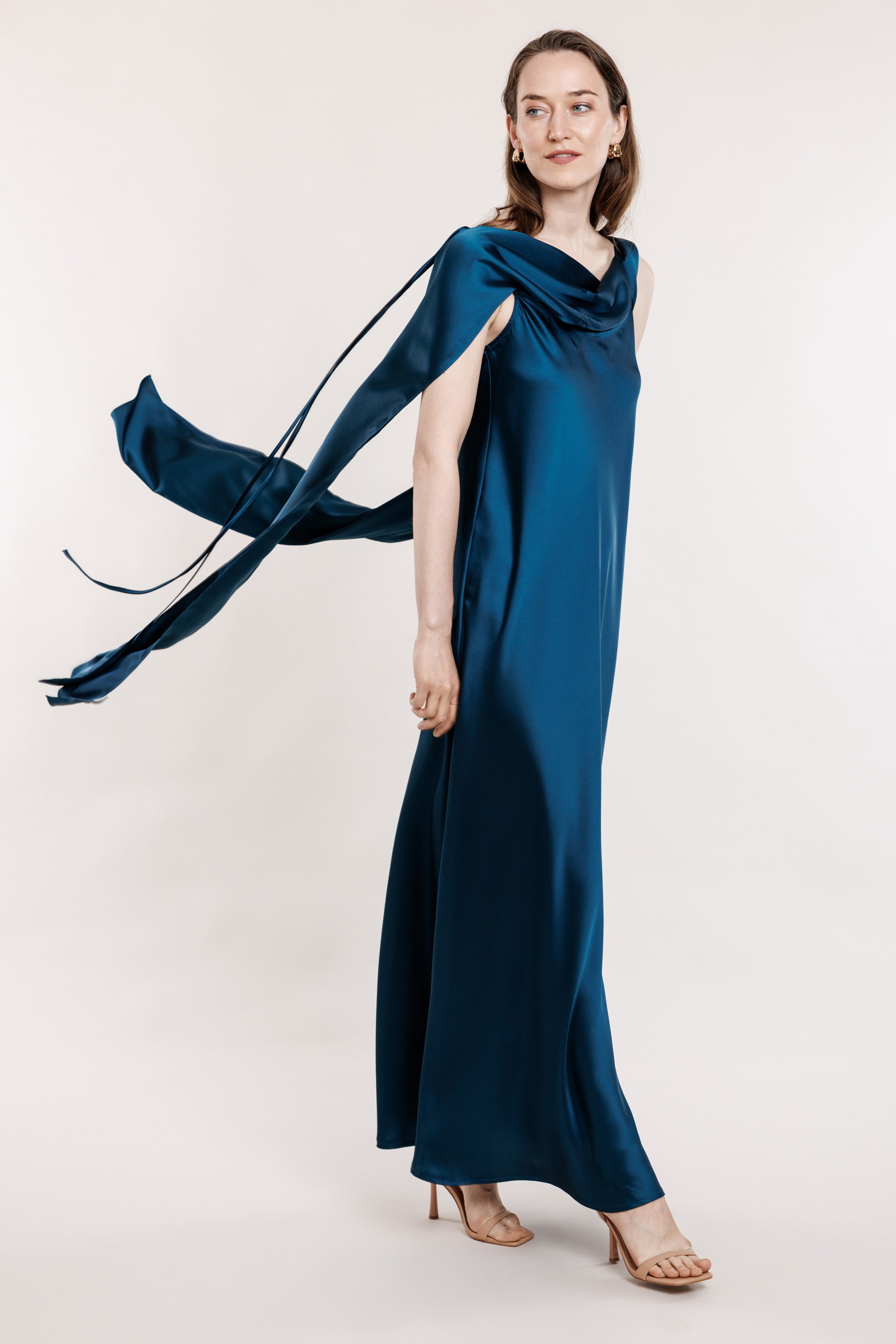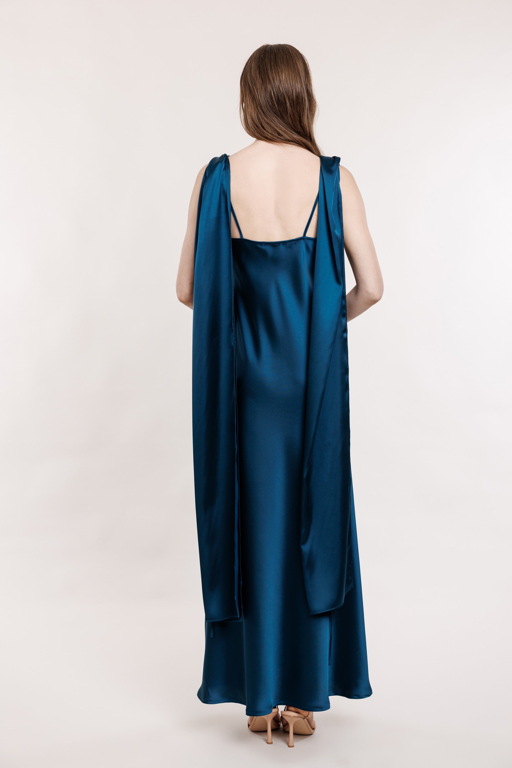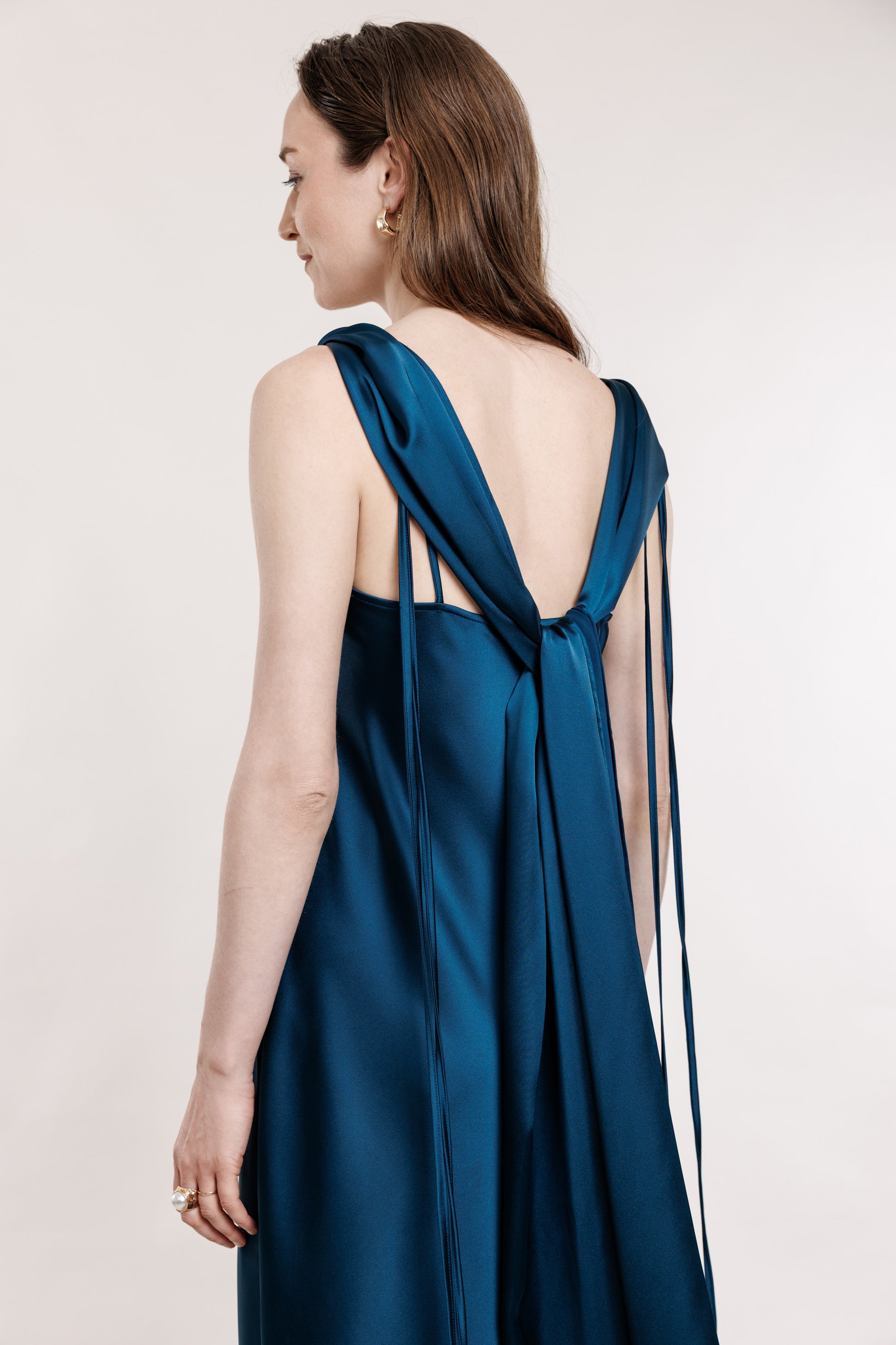 Smaragdzaļais slips ar sasienamiem, gariem plecu striķiem. Kakla lenta ir piepogājama ar pogām, kā arī nēsājama atsevišķi kā kakla dekors vai josta.