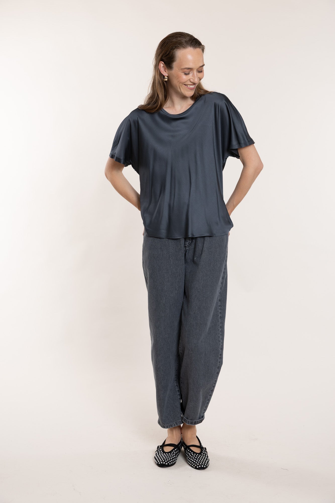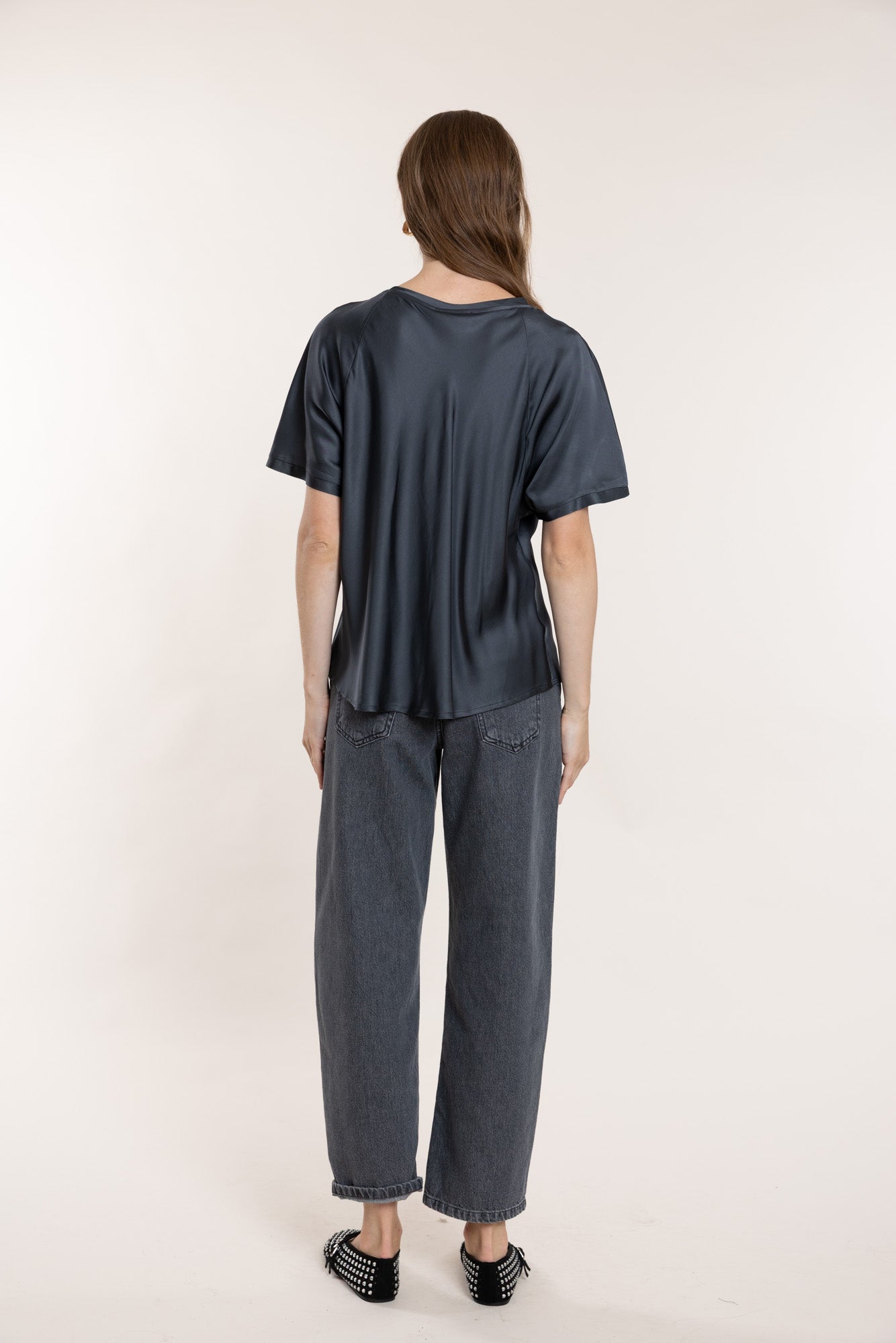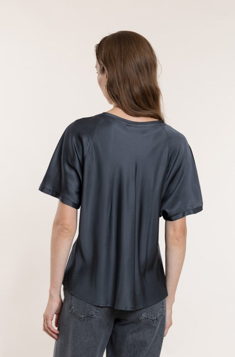 Viskozes tops grafīta tonī slīpā diegā, kopgrieztā piedurkne.