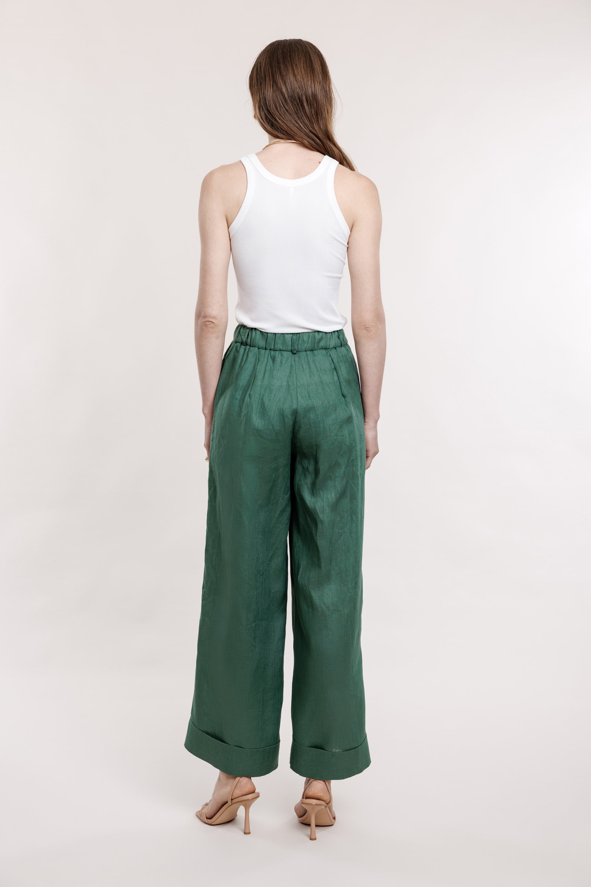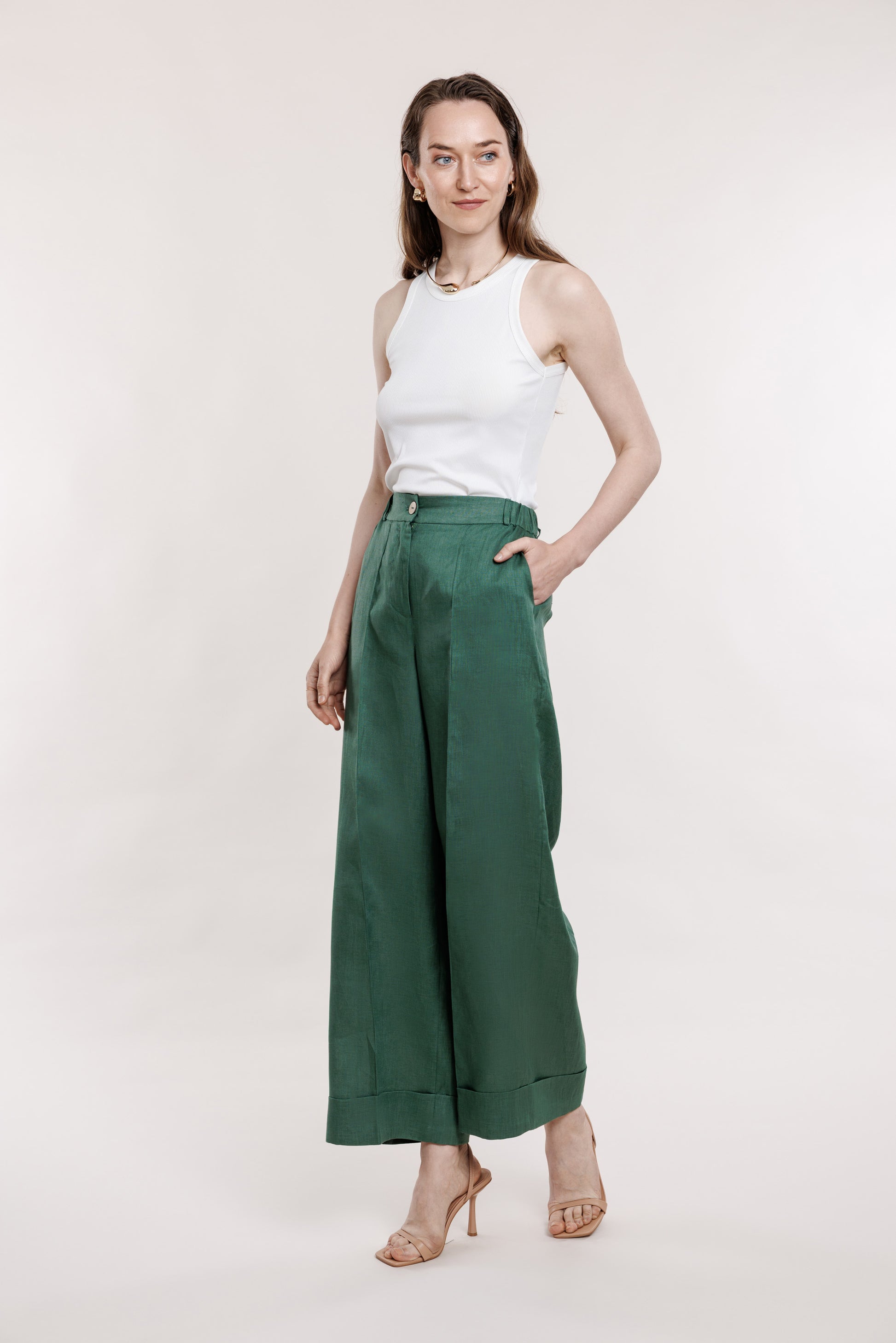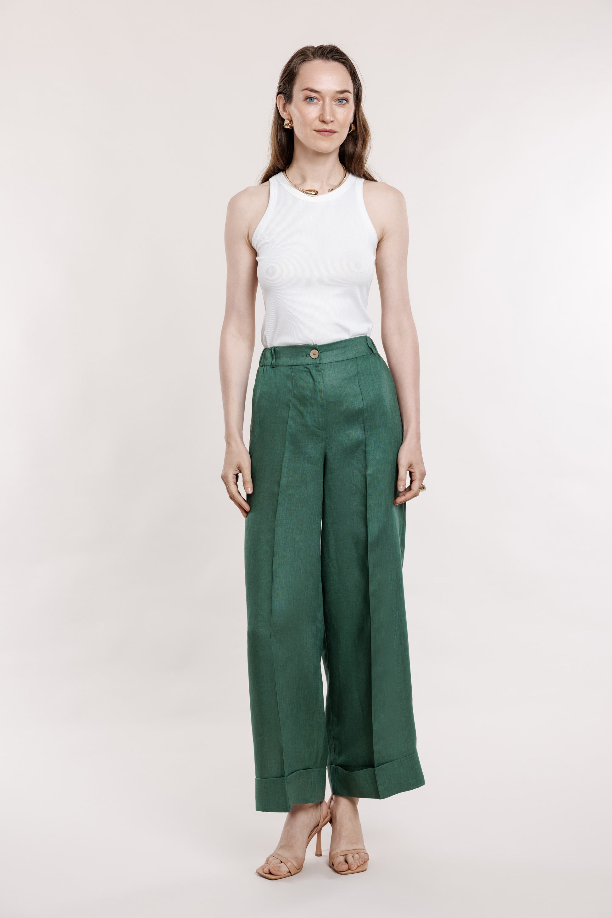 Zaļas lina bikses ar atlokiem