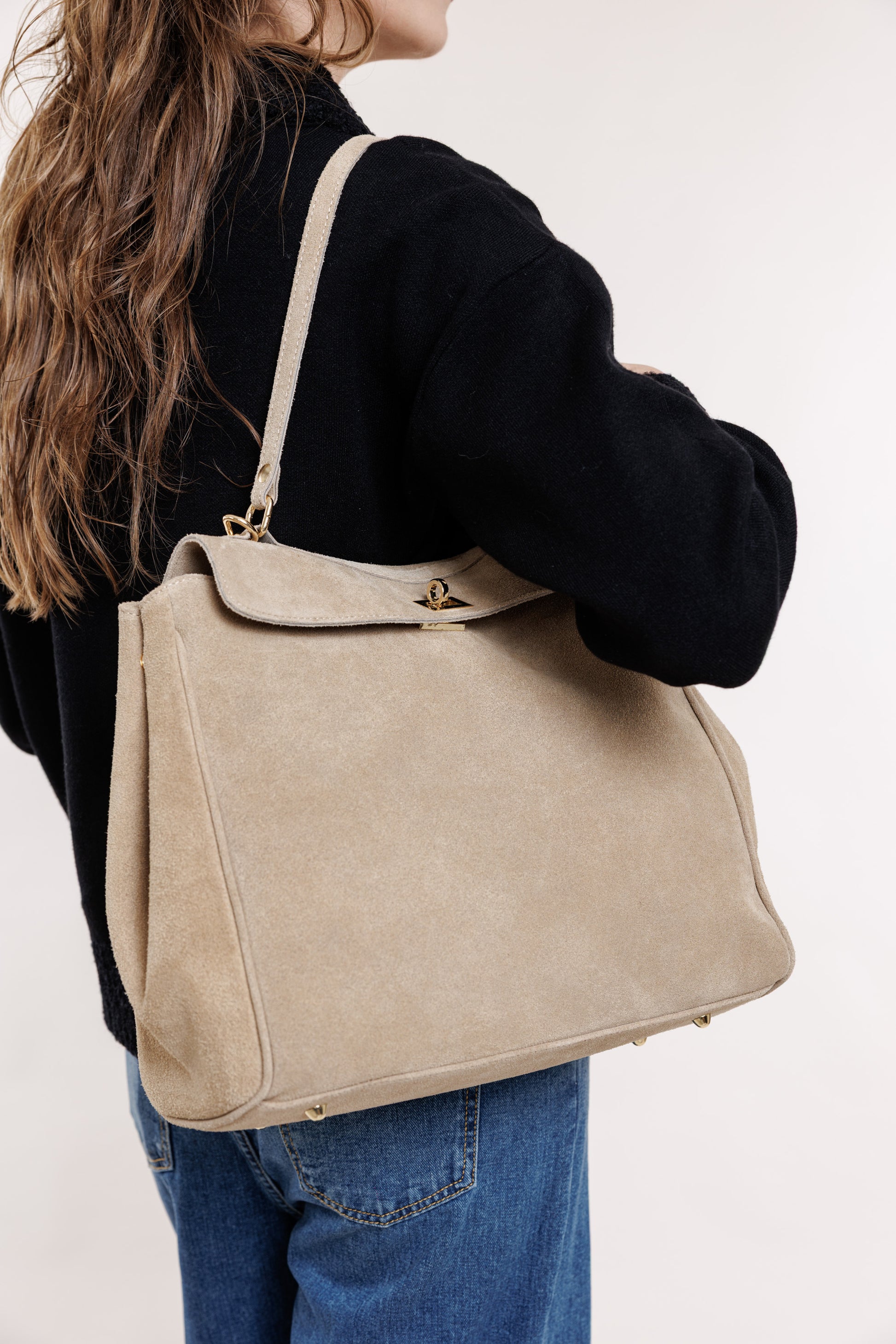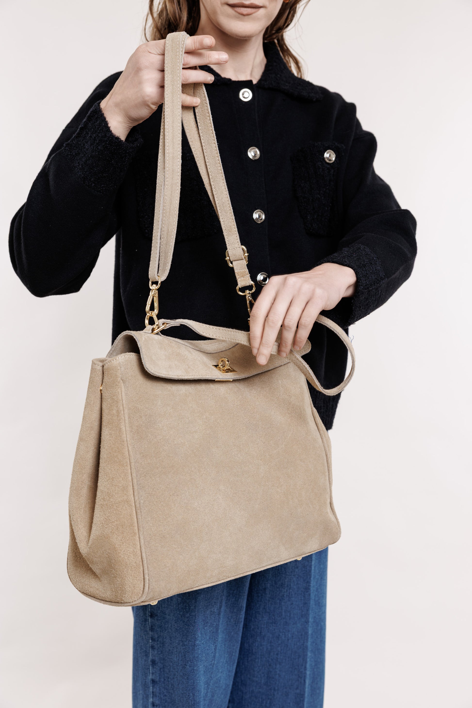 Zamšādas soma smilšu tonī